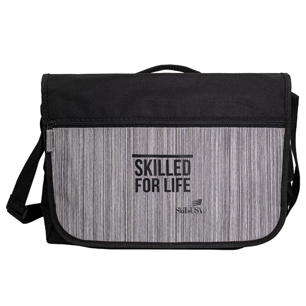 This computer messenger bag is built for life! It features a front zippered pocket, 15" laptop sleeve, and aside hook and loop pocket to keep all your belongings safe. The adjustable shoulder strap makes for comfortable carrying to class or work.
